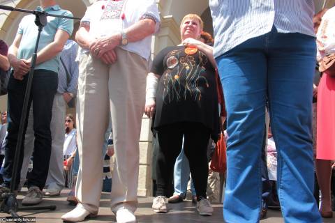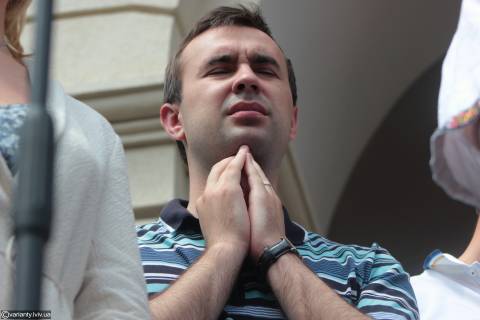 Поміж цих криків-перекрикувань. Поміж порваних плакатів та базарних сварок чи навіть атовців з мегафаном, яких садовий електорат впевнено називає тітушками, а сам Садовий – виявом львівської демократії, варто лише дивитися вперед, на сцену, оскільки все це обабічне дріботіння просто несуттєве. Садовий зігнав навколо сцени усю свою бригаду, а сам залишився трохи ззаду. Трохи збоку, щоб вміло підганяти потрібних ораторів на сцену та лишитися чистеньким у випадку великого шухера.