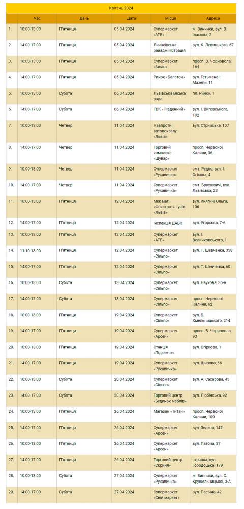 Для зручності мешканців, які здають відпрацьовані лампи й батарейки на утилізацію, екобуси мають зупинки у всіх районах Львова, а також у м. Дубляни, с. Лисиничі, с. Зашків, с. Рясне-Руське.