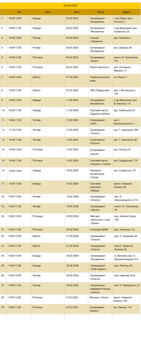 У лютому автобус для вивезення на утилізацію відпрацьованих ламп та батарейок курсуватиме Львовом чотири рази на тиждень: у середу, четвер, п'ятницю та суботу.