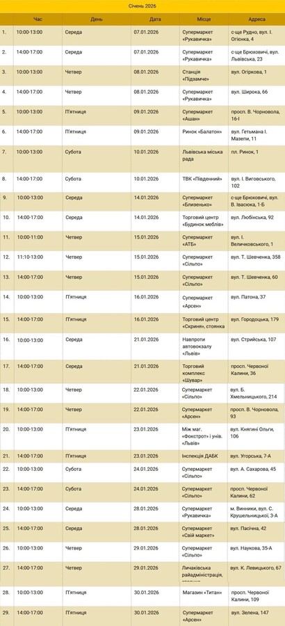 У січні автобус для вивезення на утилізацію відпрацьованих ламп та батарейок курсуватиме Львовом чотири рази на тиждень: у середу, четвер, п'ятницю та суботу.