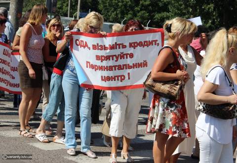 Лікарі Львівського перинатального центру провели попереджувальну акцію протесту через недофінансування реконструкції закладу.