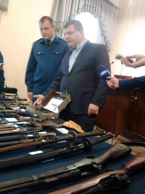 Сьогодні начальник Львівської митниці Міндоходів Сергій Попазогло продемострував частину зброї, яку цього року вилучили на пунктах пропуску через державний кордон на Львівщині.