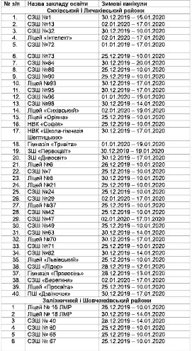 У більшості шкіл міста Львова зимові канікули розпочнуться з 25 грудня. Вони триватимуть по-різному: до 10-20 січня.