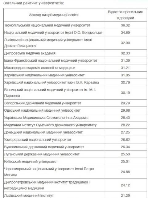 Медичний універститет Львова потрапив у трійку кращих ВНЗ України за результатами міжнародного іспиту з основ медицини.