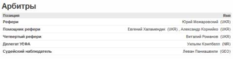 Помічникам головного рефері будуть українці Євгеній Халамендик, Олександр Корнійко та четвертий арбітр Віталій Романов.