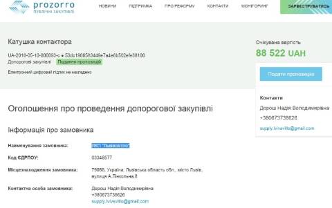 Це було опубліковано на сайті електронних закупівель ProZorro.