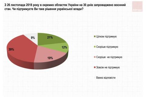 69% опитаних вважають запровадження воєнного стану запізнілим рішенням, і переконані, що його потрібно було запроваджувати ще у 2014 році після анексії Криму.