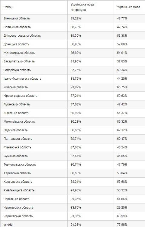 Щодо Львівщини, то 89,92% зареєстрованих абітурієнтів склали тест з української мови і літератури.