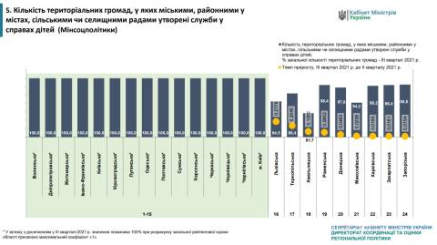 Станом на третій квартал 2021 року у Львівській області міські, сільські чи селищні ради утворили служби у справах дітей у 94,5% територіальних громад області. Відповідно у третьому кварталі минулого року у чотирьох тергромадах Львівщини не утворили служб у справах дітей.