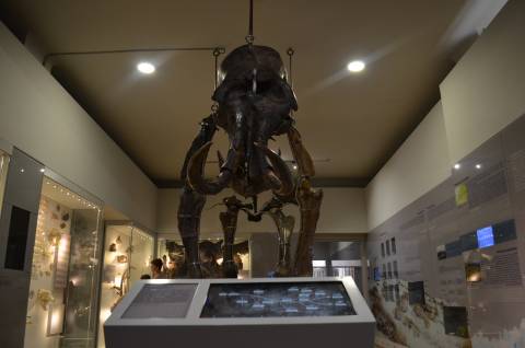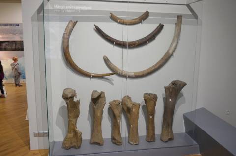 Головна зірка виставки – скелет мамута найвеличнішого. Така назва підвиду йому личить, адже, закріплений металевою конструкцією до стелі, він справді найвеличніший поміж усіх експонатів. Мамут найвеличніший населяв територію від Британських островів в Європі до Чукотки в Азії. Досягав висоти 3,5 метрів, ваги – до 6-8 тон. Вимерли мамути в Євразії і Північній Америці близько 10 тисяч років тому. Найдовше вони жили на острові Врангеля – ще близько 4 тисяч років тому.