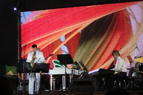 Створювати атмосферу допомагають ті ж таки дискотечна світломузика і низькопробний відео-ряд з пшеничними полями, абстракціями типу "Вінамп 1.0" чи школярськи-банальними геометрично-правильними подобами української вишивки на світловому екрані.