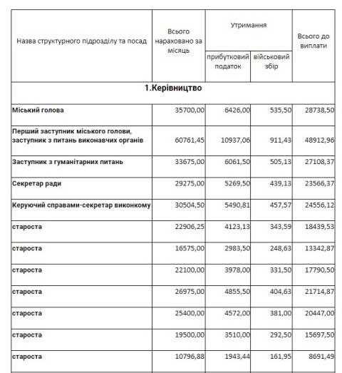 Секретар ради Іван Вовк у кітні заробив 29275 грн зарплати, а керуючий справами – секретар виконкому Ольга Кузбит – 30504,50 грн.