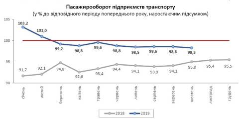 У січні-жовтні цього року послугами пасажирського транспорту скористалися 194,5 млн пасажирів, що на 4,4% більше, порівняно з цими місяцями 2018 року.