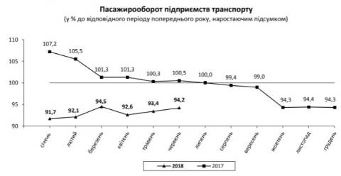 Зокрема, залізниця відправила 5,9 млн пасажирів, що на 4,4% менше, ніж у січні-червні 2017 року, а послугами автомобільного транспорту скористалися 59,2 млн пасажирів, що на 11% менше.