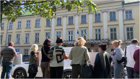 Сьогодні, 24 червня, мешканці села Великі Грибовичі влаштували пікет під стінами Львівської обласної ради з вимогою передати в комунальну власність Львівської громади, до складу якої входить село, будівлю амбулаторії на вул. Стуса, 1-Б, зведеної ще сім років тому.