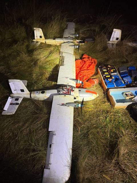 У них вилучили три дрони, 23 акумулятори для БпЛА, ноутбук, пульт керування, флеш-накопичувачі з GPS-маршрутами та інше обладнання, що використовувалося для організації злочину.