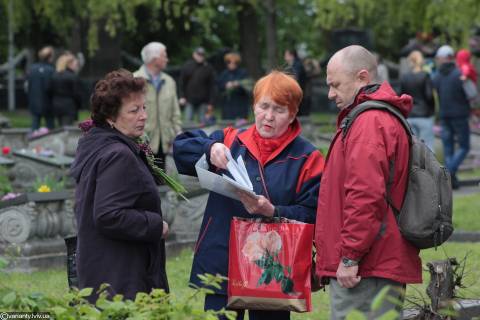 І невідомо для кого усе це воскрєсє, бо переважно уся російськомовна публіка більше думає про земне, аніж про горнє. Лише одиниці з них прийшли справді вшанувати загиблих, бо усі інші тут, щоб принципово потрусити русскім міром, рекламними пахощами русского духа. Поміж них так і витає базарний дух свята і тому понурий пенсіонер просить екзальтовану пенсіонерку не фотографувати його пса, бо він (пес) більше не їстиме каші.