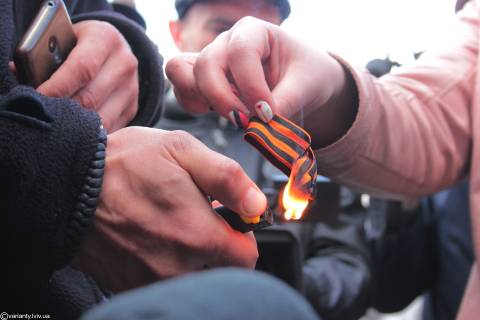 Ні, звичайно, спалювання георгіївської стрічки то споконвічний свободівський ритуал на який збігаються усі навколо, оскільки це єдина атракція навкруги поміж дрібних суперечок та повільного розповзання Пагорбом Слави львівської вати, яка крізь зуби сипле під ніс прокляттями у бік усього українського.
