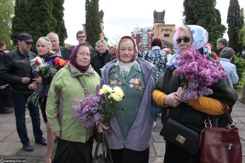 На Пагорб Слави цих дітей війни привозять автобусами, але впізнаваних облич там мізер. Чи то вони так добре шифрувалися у попередні роки, чи це шанувальники святкування 9 травня у Львові з інших міст.