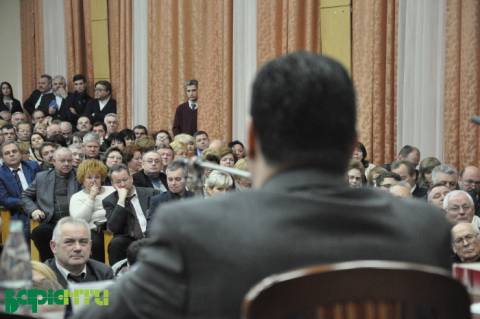 Є й багато таких, яким кортить підійти до мікрофону, потрапити на очі міністрові. Вони розповідають про наболіле, дарують книги, жартують, дивують і просто дякують вельмишановному панові міністрові.
