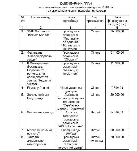Сьогодні, 26 січня, виконавчий комітет Львівської міської ради затвердив календарний план загальноміських централізованих заходів на 2018 рік та їхнє фінансування, яке здійснюватимуть коштом бюджету Львова.