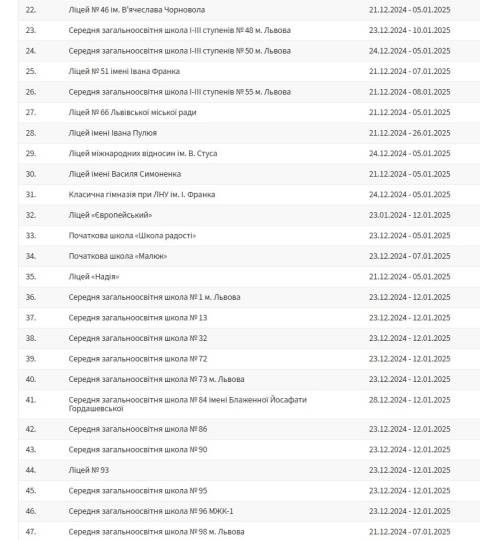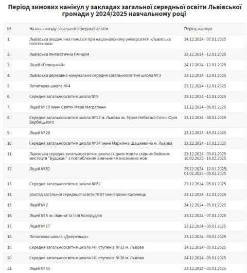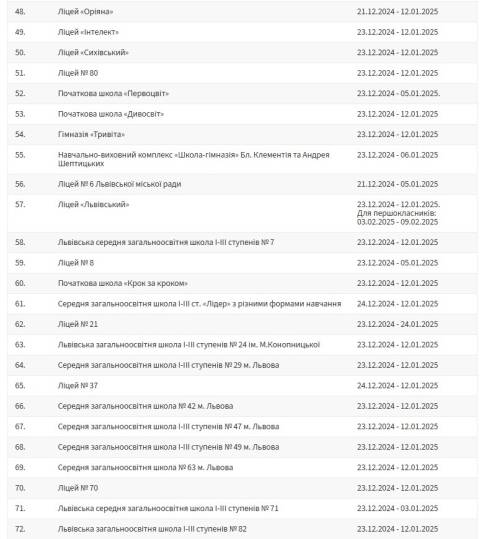 З 23 грудня у більшості шкіл Львівської міської територіальної громади стартують зимові канікули, які триватимуть орієнтовно 2-3 тижні.