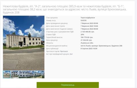 Наразі у системі СЕТАМ було проведено торги на ці будівлі. Міськрада Львова просить їх скасувати.