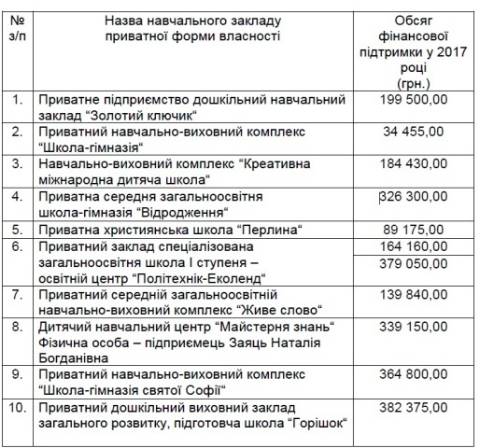 Сьогодні виконавчий комітет Львівської міської ради склав перелік навчальних закладів Львова приватної форми власності, яким надається фінансова підтримка за рахунок коштів міського бюджету Львова.