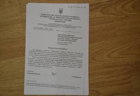 Наразі його досліджують у Міністерстві регіонального розвитку, будівництва та житлово-комунального господарства.