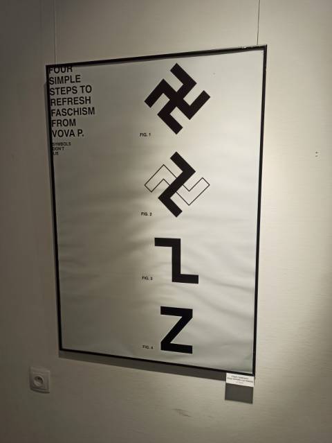 На першому поверсі Палацу мистецтв розташовані: виставка дитячого малюнку "Через терни до зірок" та виставка Українського плакату робіт студентів Харківської державної академії дизайну і мистецтв.