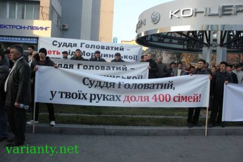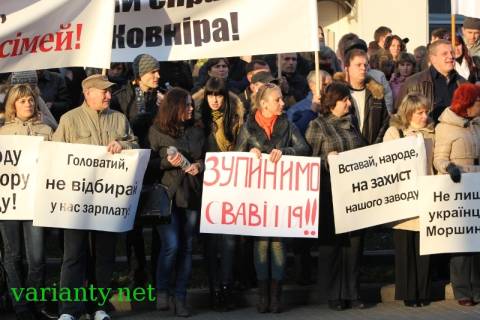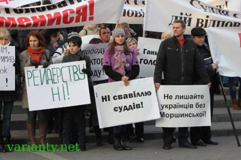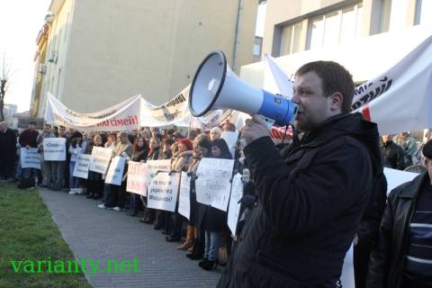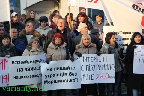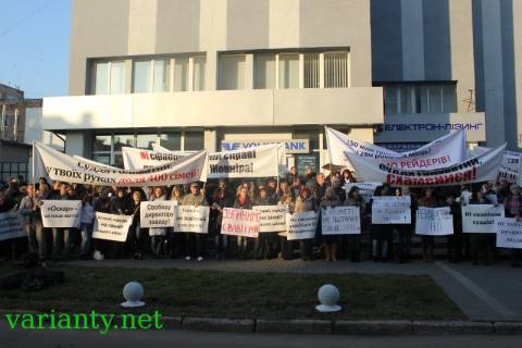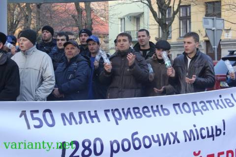 Мітинг на підтримку Моршинського заводу мінеральних вод біля Галицького районного суду у Львові.