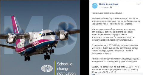 Нагадаємо, нещодавно "Мотор Січ" інформувала, що скасує рейси зі Львова до Києва лише на місяць, з 9 листопада до 20 грудня.
