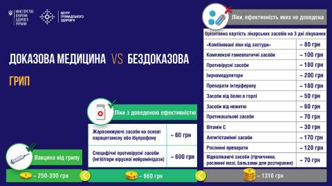 Ефективність теплових процедур, фітотерапії, вітамінів, інтерферонів, гомеопатичних препаратів, антибіотиків для профілактики та лікування грипу не доведена. Ці методи не допомагають вилікувати грип, а таке лікування може призвести до тяжких укладнень.