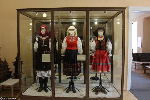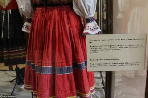 Ось є там експонат "Комплекс жіночого вбрання. Закарпаття". Такий підпис – це чорна безграмотність під науковим кутом. Бо Закарпаття в етнографічному плані не є однорідним. Там є румуни, мадяри, гуцули, бойки, лемки та інші народи. То чий це одяг?"