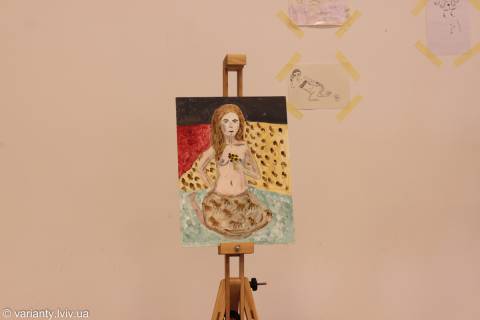Роботи Karine, виставлені у Медіатеці, представляють жіноче ню – жанр ніби-то досить далекий від повсякденної бібліотечної дійсності. Але вся сіль у тому, що зображені моделі – це дівчата, які тут працюють.