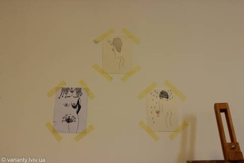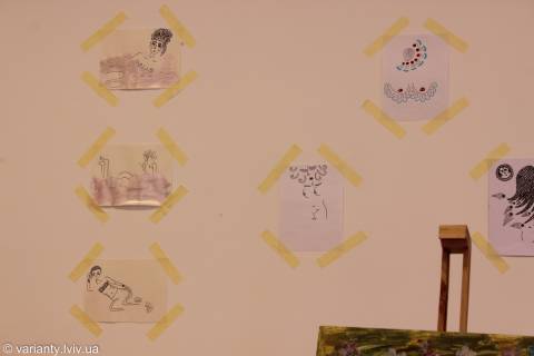 Це щось близьке до наїву, хоча графічні малюнки, які становлять на виставці тло живописних полотен, показують і більш концептуальні нотки у підході Karine.