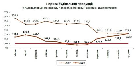 Індекс будівельної продукції у 2020 році становив 122,3%, порівняно з 2019 роком.