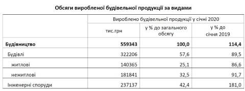 Відтак, індекс будівельної продукції у січні цього року становив 114,4%, порівняно з цим місяцем минулого року.
