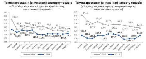 Загалом у 2019 році підприємства Львівщини експортували товарів на 2202 млн дол, а імпортували – на 3086,3 млн дол. Порівняно з 2018 роком, експорт підприємств області зріс на 16,2%, імпорт – 13,9%.