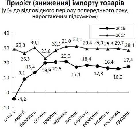 Упродовж 2017 року імпорт готових текстильних виробів (крім одягу) збільшився на 81,8%, засобів наземного транспорту – на 57,7%, механічного обладнання та їх частин – на 36,5%, шкур – на 35,2%, електротехнічного обладнання – на 30,9%. Водночас суттєво зменшився імпорт жирів та