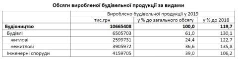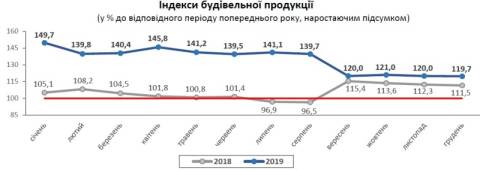 Відтак, індекс будівельної продукції у 2019 році становив 119,7%, порівняно з 2018 роком.