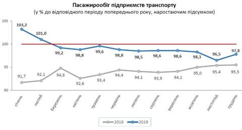 У 2019 році послугами пасажирського транспорту скористалися 233,8 млн пасажирів, що на 3,6% більше, порівняно з 2018 роком.