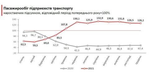 У 2021 році послугами пасажирського транспорту скористалися 153,8 млн пасажирів, що на 12,4% більше, порівняно з 2020 роком.