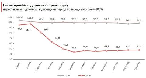 У 2020 році послугами пасажирського транспорту скористалися 136,1 млн пасажирів, що на 35,8% менше, порівняно з 2019 роком.