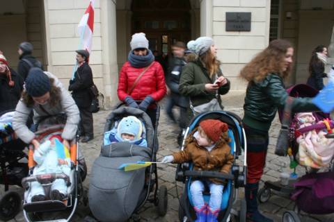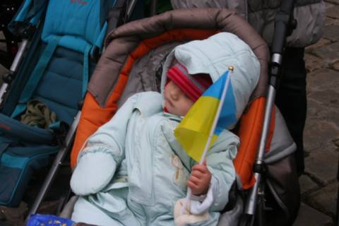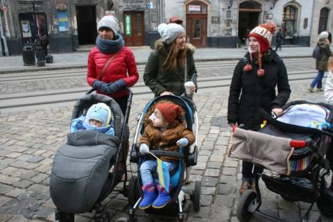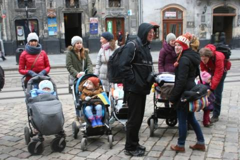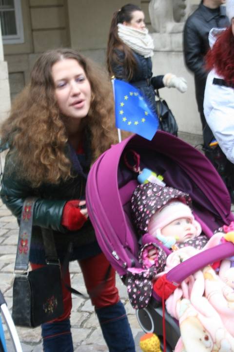 Сьогодні біля стін Львівської міської ради молоді батьки разом з дітьми провели мирну акцію на підтримку євроінтеграції України.