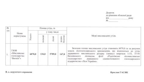У документі наголошують, що на території, яка увійде до складу мисливських угідь ТзОВ "Мисливське господарство "Витків", немає об'єктів природно-заповідного фонду.