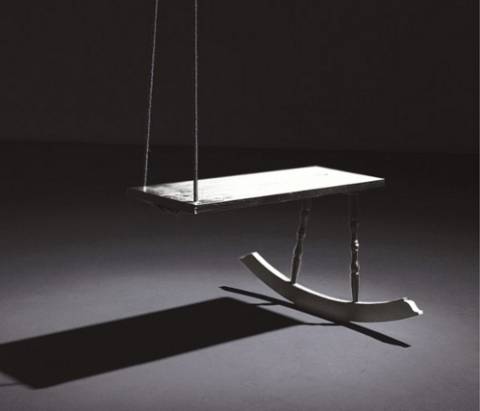 Але виставка була на трьох. Дружина Ягельського фотографує речі, які перед тим , приводить в рух дерев’яними планками. Показує простір після делікатного втручання. Це популярна річ у західному мистецтві.