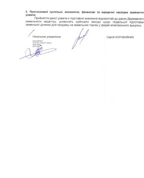 "Надати управлінню земельних ресурсів департаменту природних ресурсів та будівництва дозвіл на розроблення технічної документації із землеустрою щодо встановлення меж земельної ділянки площею 1 га у с. Малі Підліски для продажу у власність на конкурентних засадах" – йдеться в ухвалі.