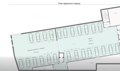 Площа громадських приміщень становитиме 1140 м², а площа житлової забудови – 890 м². У підземному паркінгу передбачено облаштувати 25 місць, з яких 10 – гостьові.