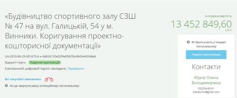 Управління освіти департаменту гуманітарної політики Львівської міської ради оголосило тендер на будівництво спортивного залу СЗШ № 47 на вул. Галицькій, 54 у м. Винники.